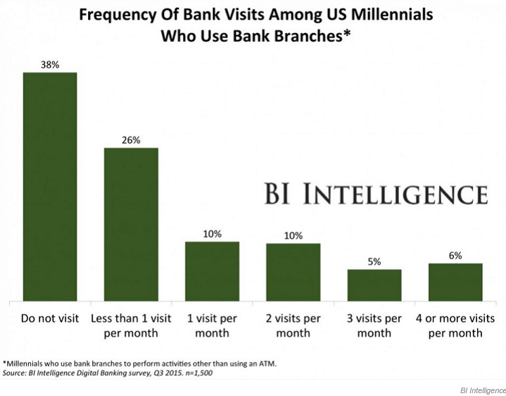 Y kuşağı, banka aktivitelerini gerçekleştirmek için dijital bankacılık kanallarını giderek daha fazla kullanırken banka şubelerini daha az ziyaret etmeye başladı.