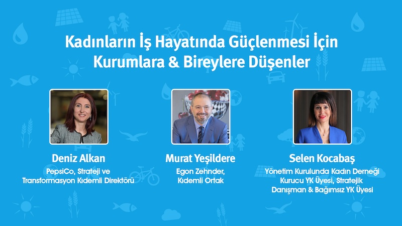 5 Ekim Çarşamba günü “Kadınların İş Hayatında Güçlenmesi İçin Kurumlara & Bireylere Düşenler” başlıklı sohbette PepsiCo Strateji ve Transformasyon Kıdemli Direktörü Deniz Alkan, Egon Zehnder Kıdemli Ortağı Murat Yeşildere ve
