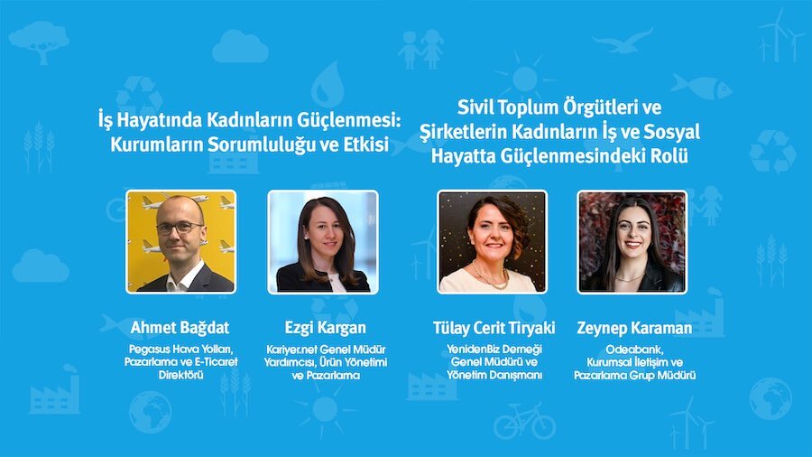 31 Ekim Perşembe günü, “İş Hayatında Kadınların Güçlenmesi: Kurumların Sorumluluğu ve Etkisi” başlıklı sohbetimizde Pegasus Hava Yolları Pazarlama ve E-Ticaret Direktörü Ahmet Bağdat ile Kariyer.net Genel Müdür Yardımcısı Ezgi Kargan bizlerle birlikteydi.