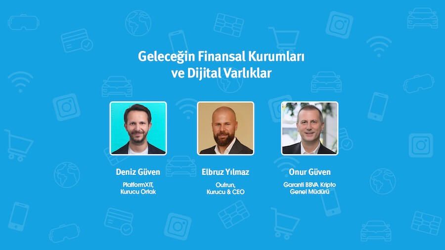 “Geleceğin Finansal Kurumları ve Dijital Varlıklar ” başlıklı sohbetimizde PlatformXIT Kurucu Ortağı Deniz Güven, Outrun Kurucusu & CEO’su Elbruz Yılmaz ve Garanti BBVA Kripto Genel Müdürü Onur Güven bizlerle birlikteydi.